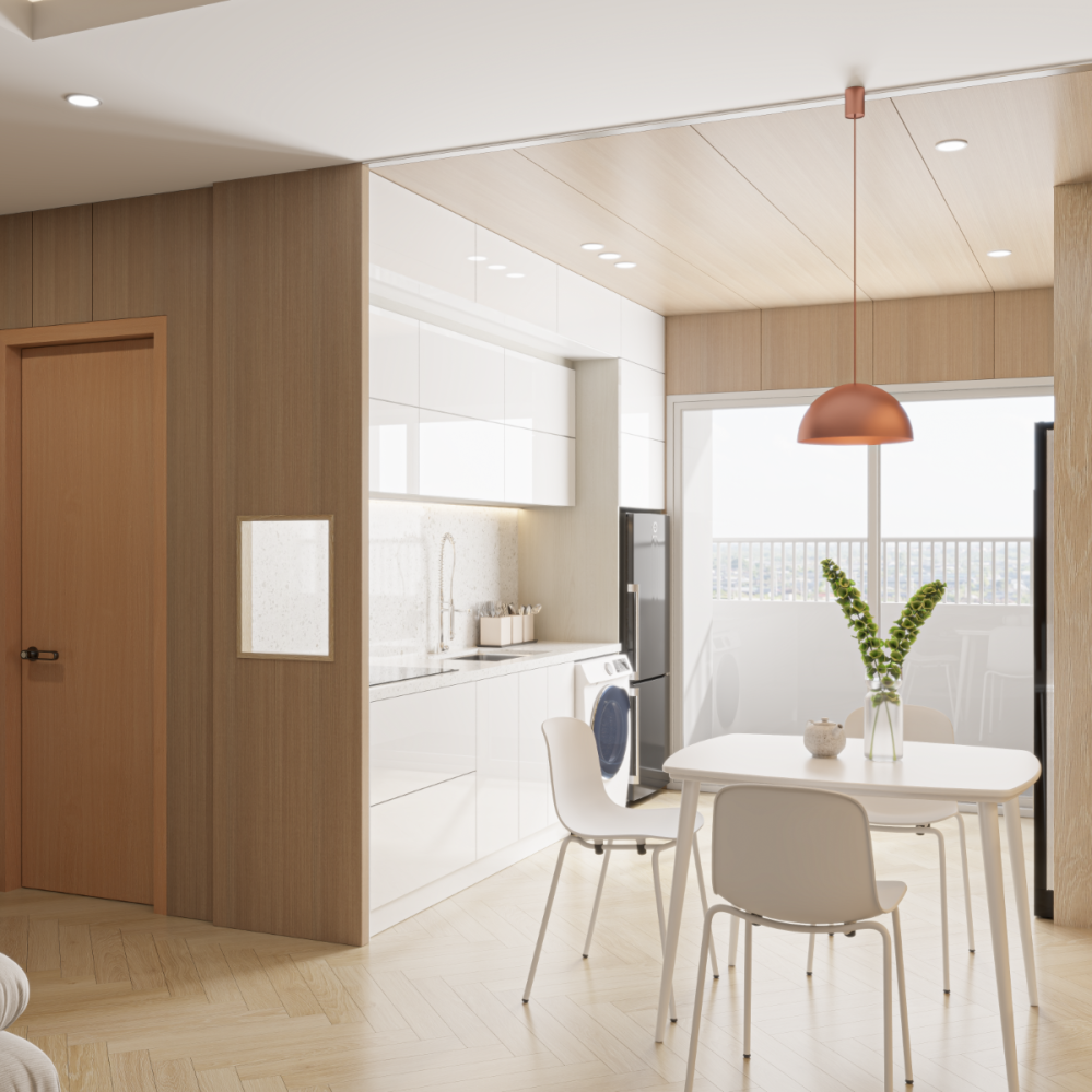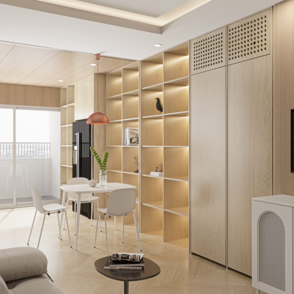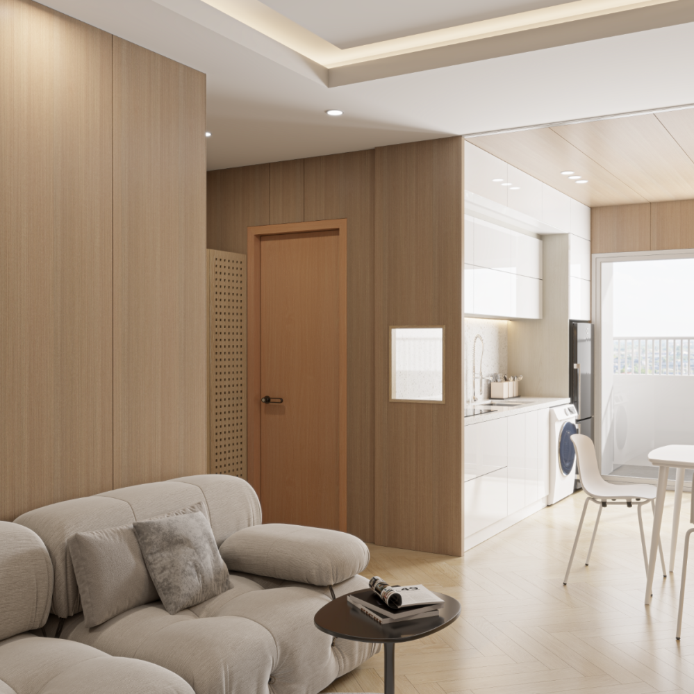 Full House là đơn vị thiết kế & thi công nội thất trọn gói cho căn hộ tại Mường Thanh Viễn Triều – nơi sở hữu view biển tuyệt đẹp và không gian sống tiện nghi giữa lòng thành phố biển. Dự án được thiết kế theo phong cách hiện đại – tối giản, tối ưu diện tích sử dụng và đảm bảo sự thoáng đãng, hài hòa cho không gian nghỉ ngơi và sinh hoạt.